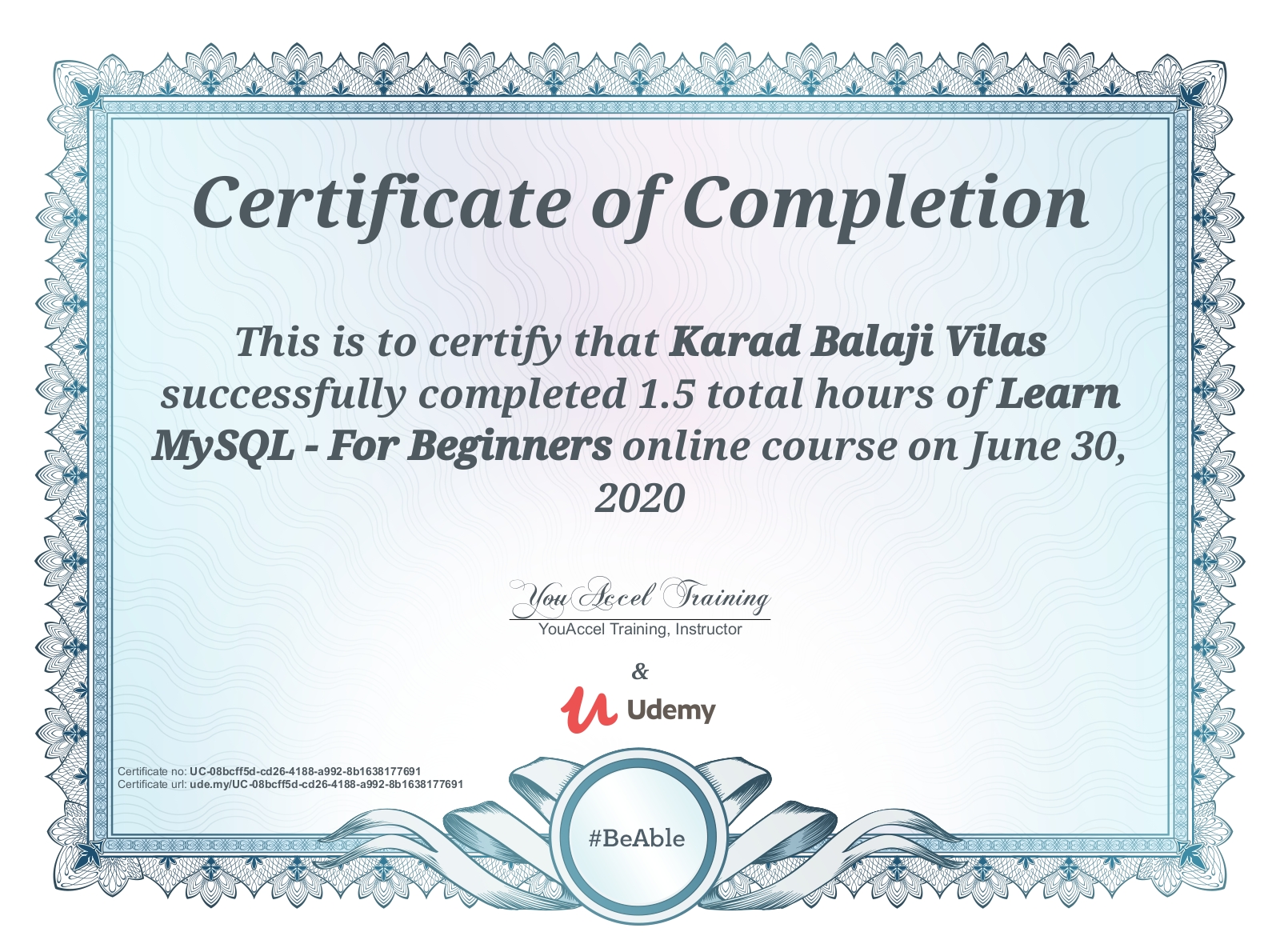 UdemyJun 2020 - View certificate