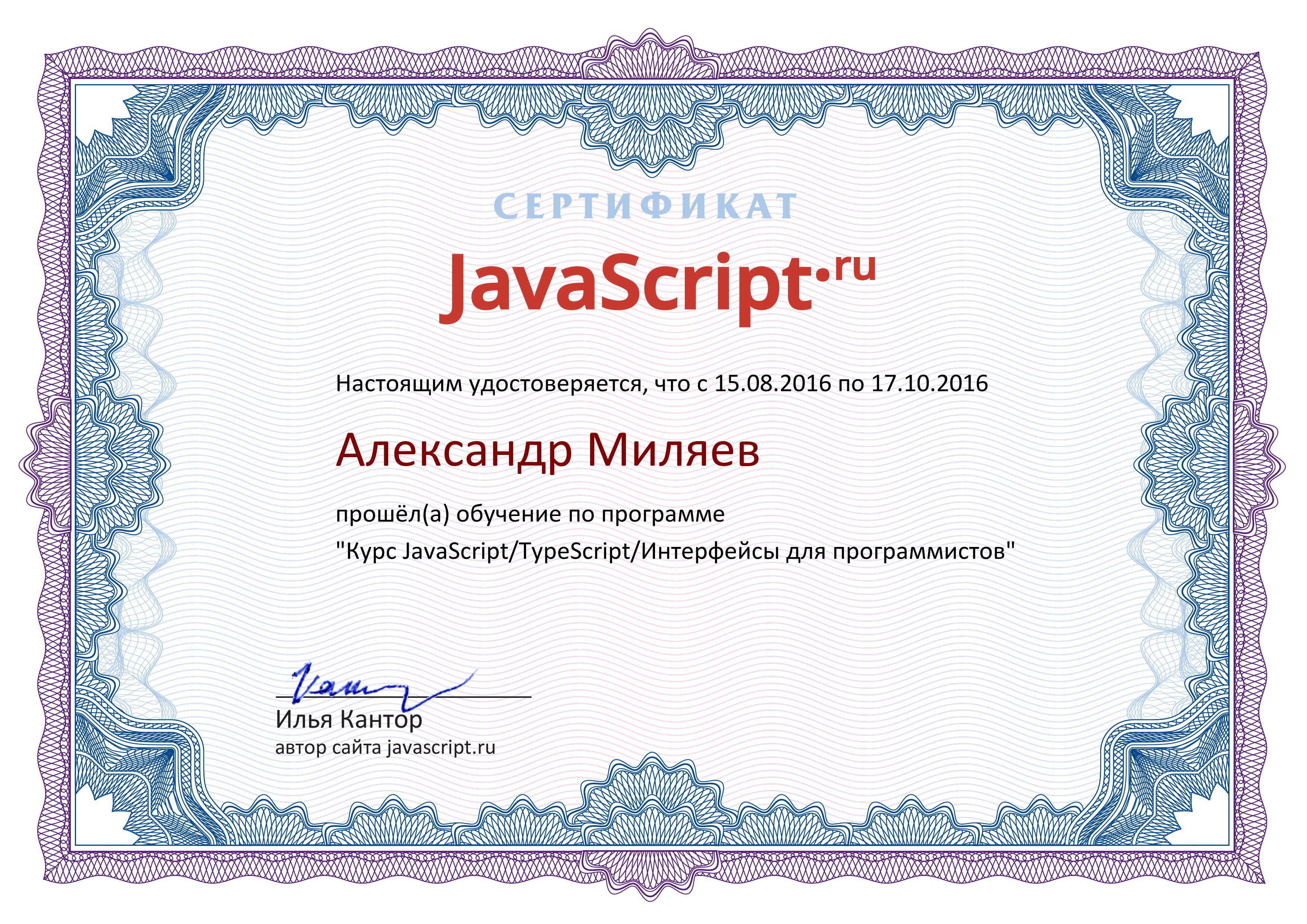 JavaScript.ru - View certificate