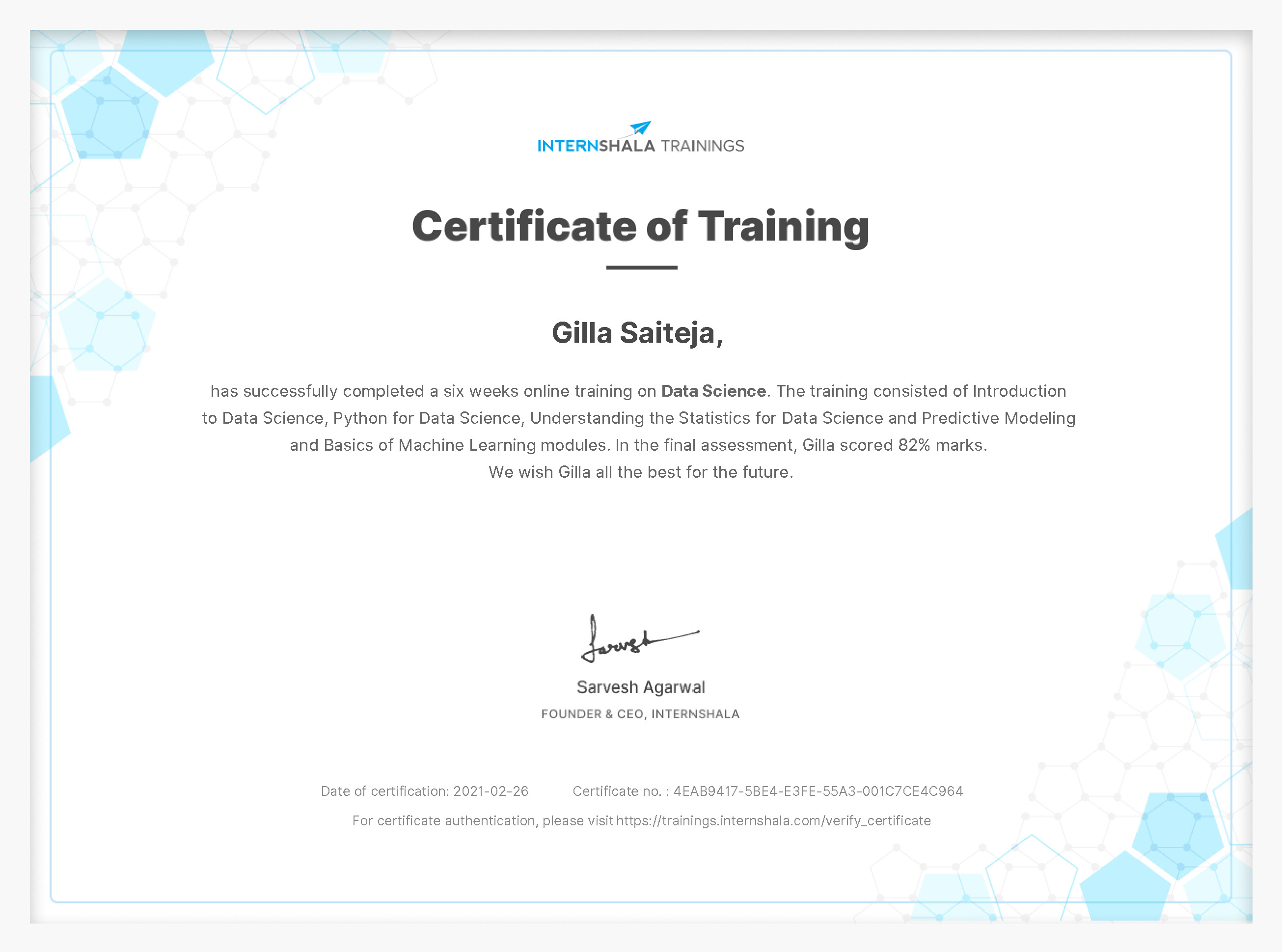 InternshalaJan 2021 - View certificate