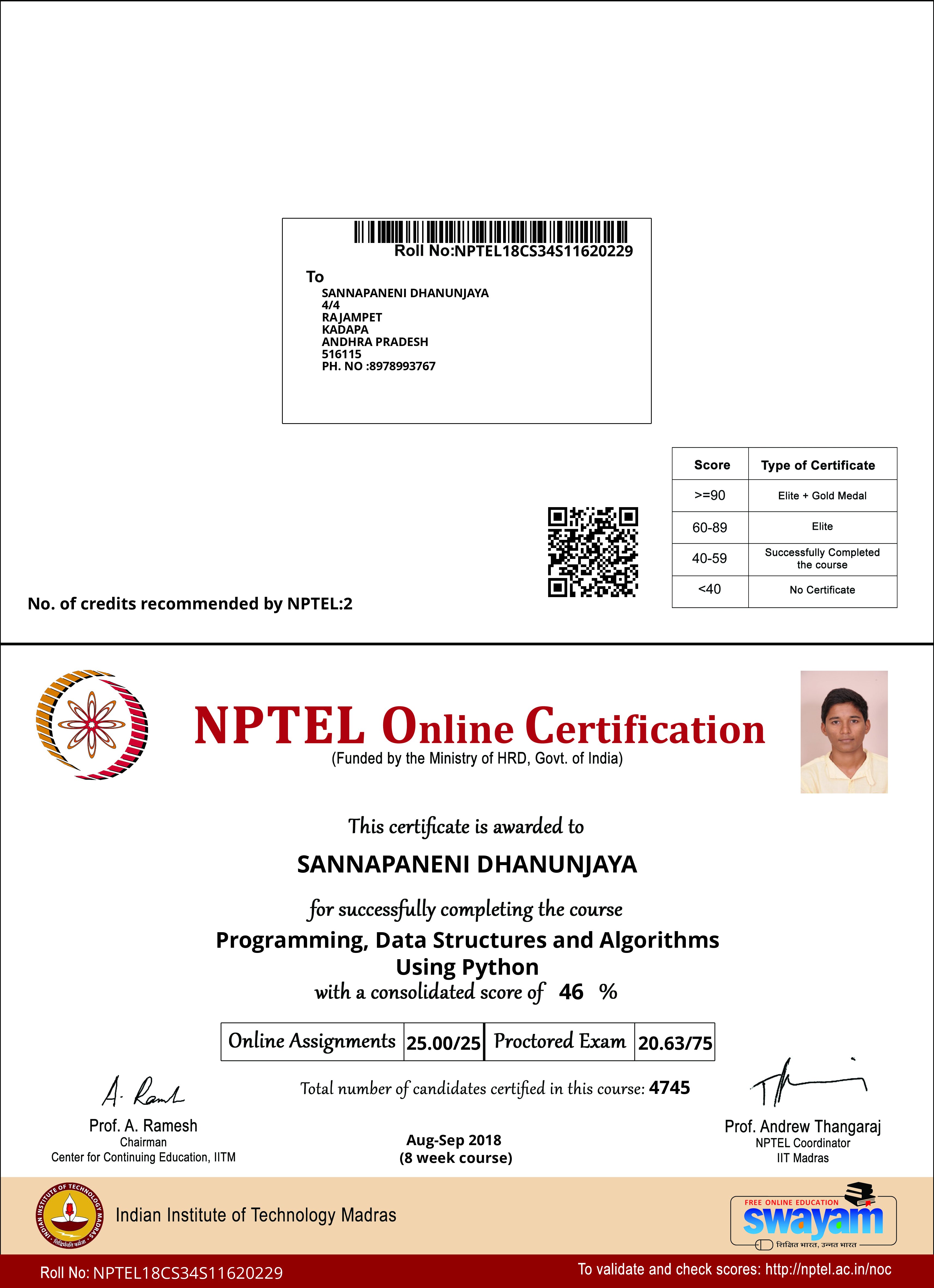 Programming, data structures and algorithms using python