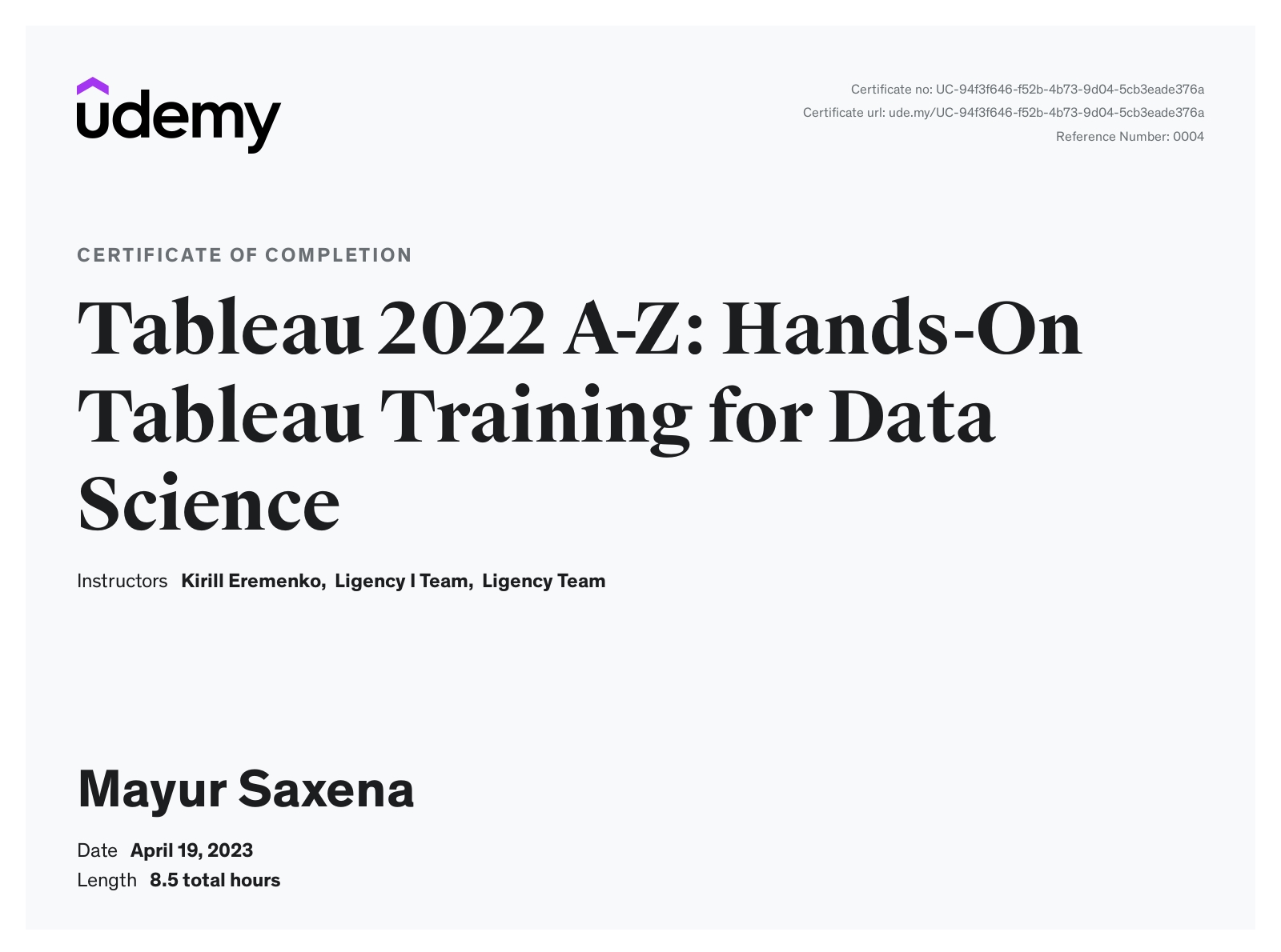 Udemy - View certificate