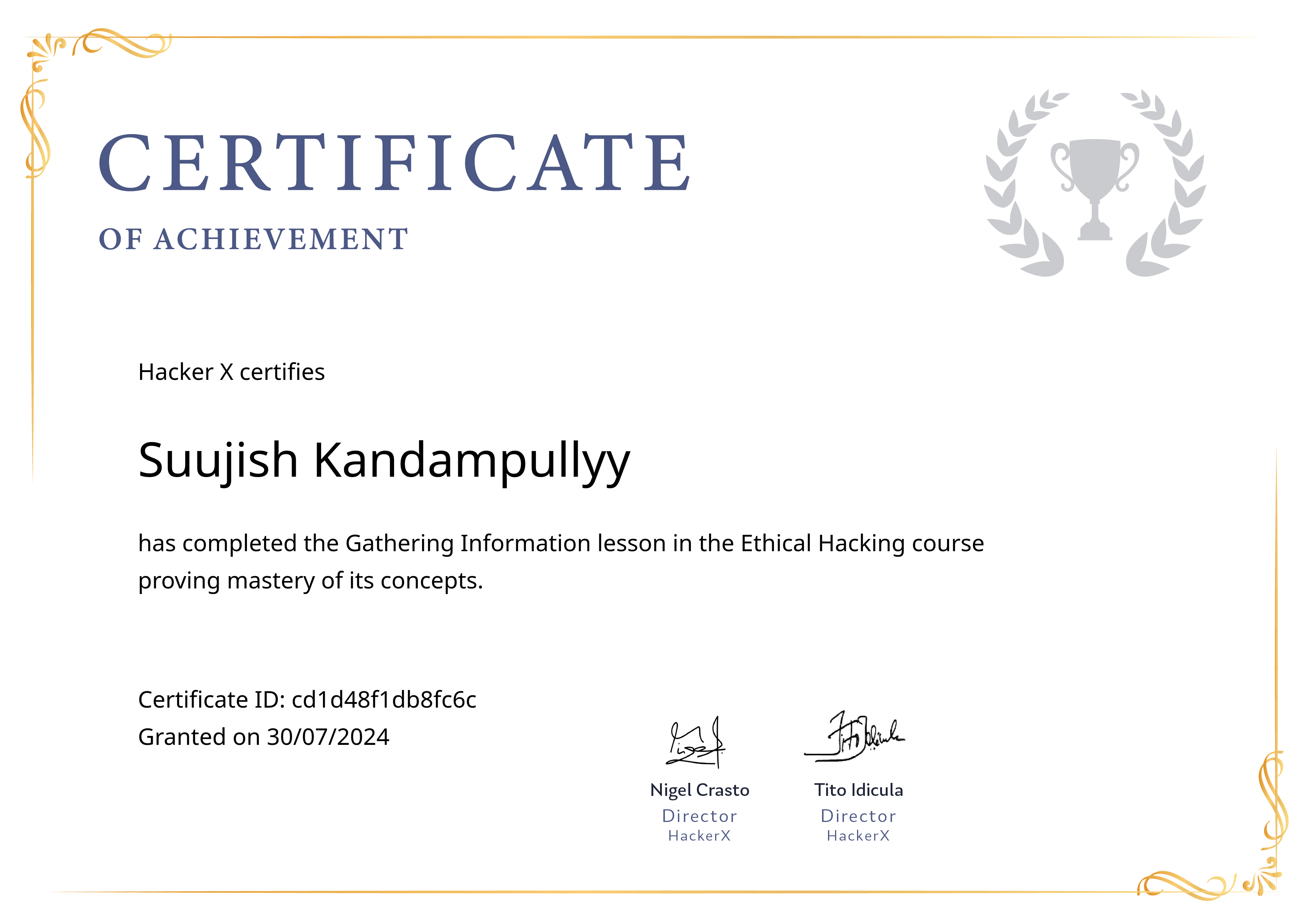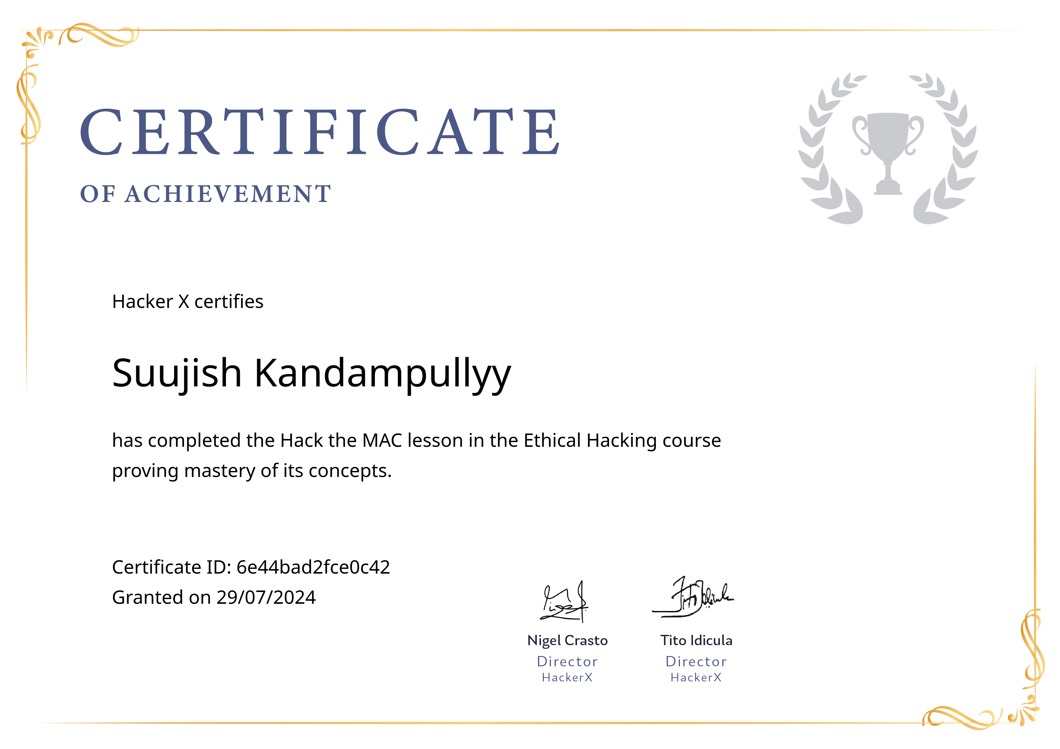 HackerXJul 2024 - View certificate