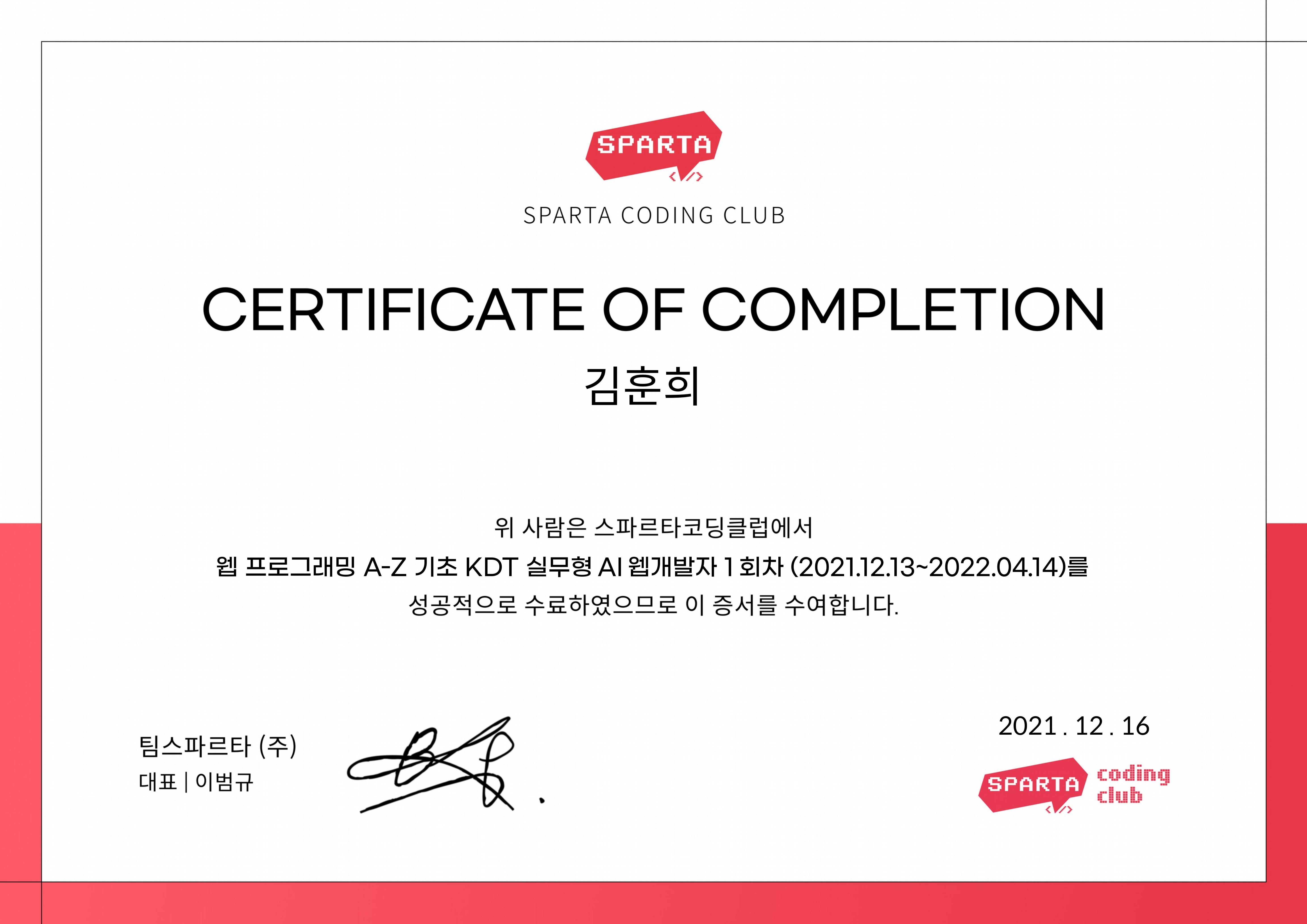 팀스파르타(주) (TeamSparta)Dec 2021 - View certificate