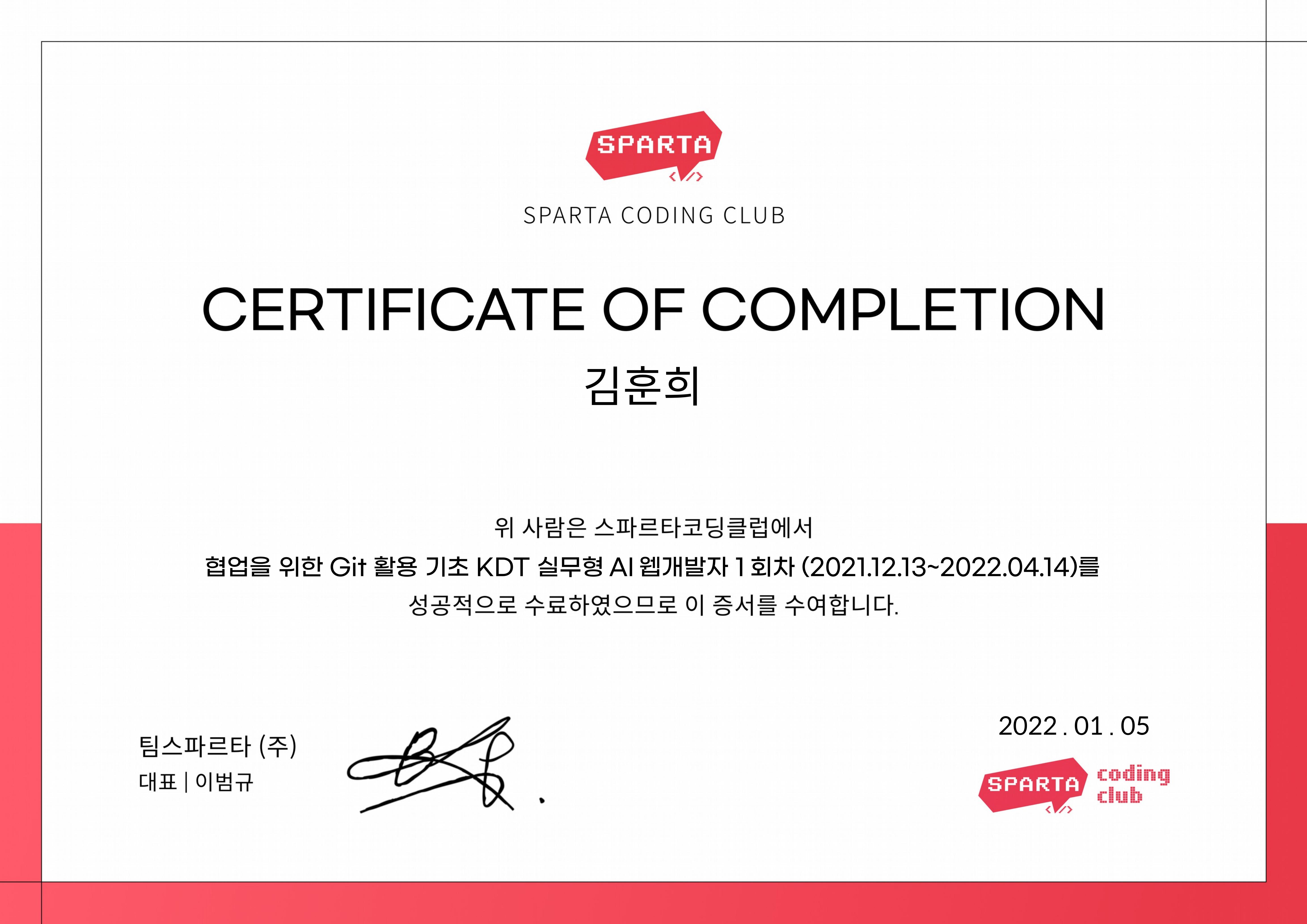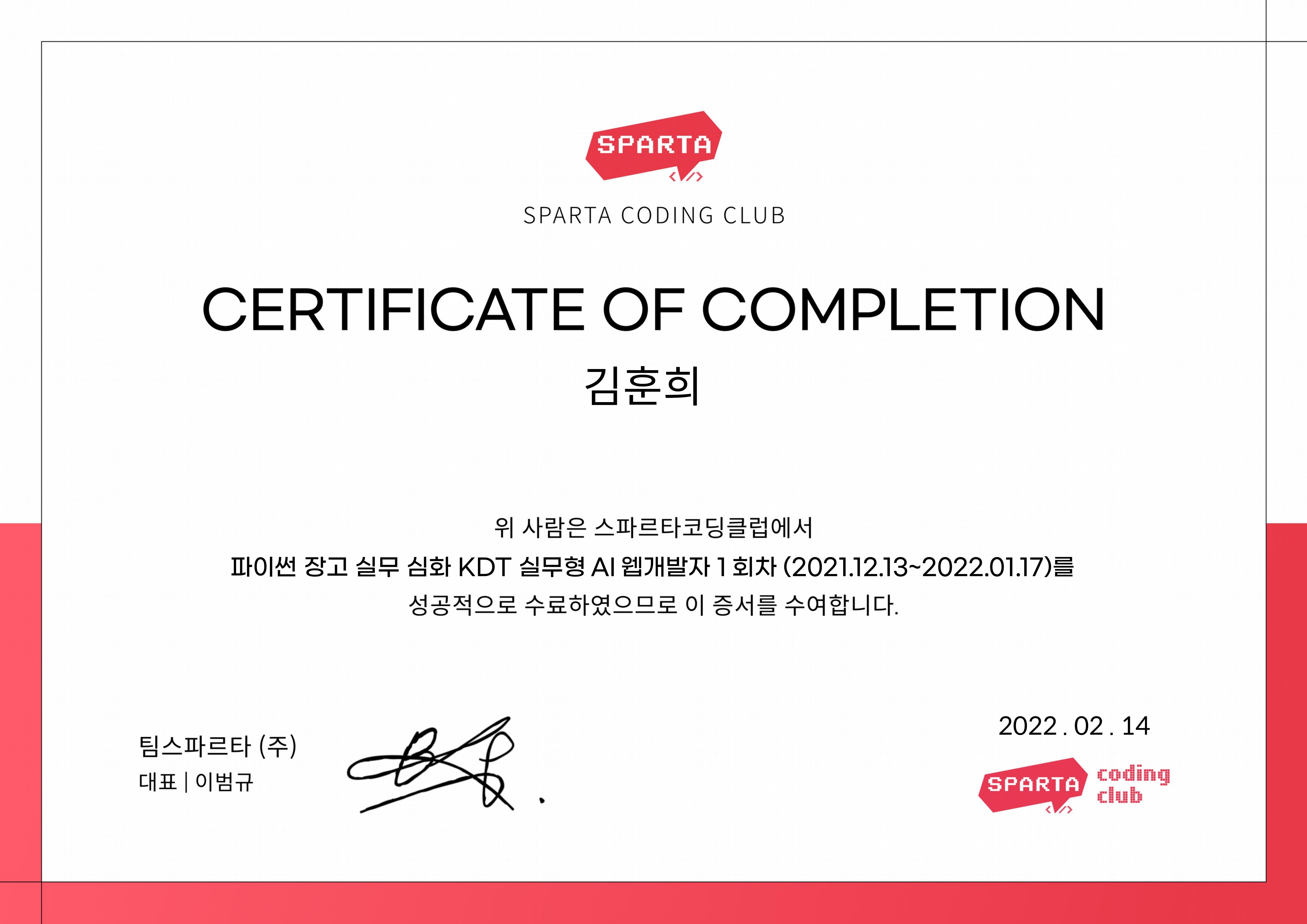 팀스파르타(주) (TeamSparta)Jan 2022 - View certificate