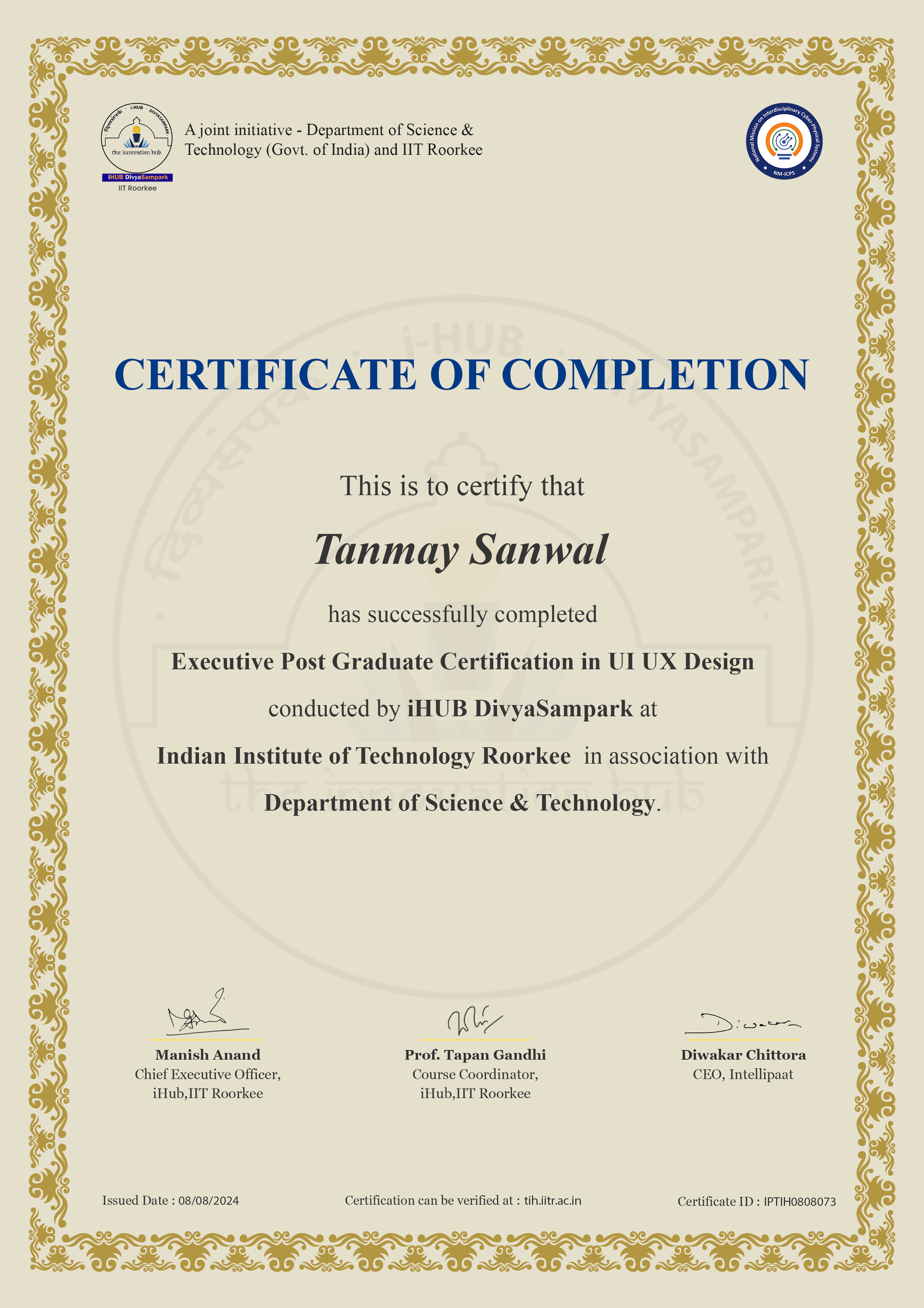 Indian Institute of Technology, RoorkeeAug 2024 - View certificate