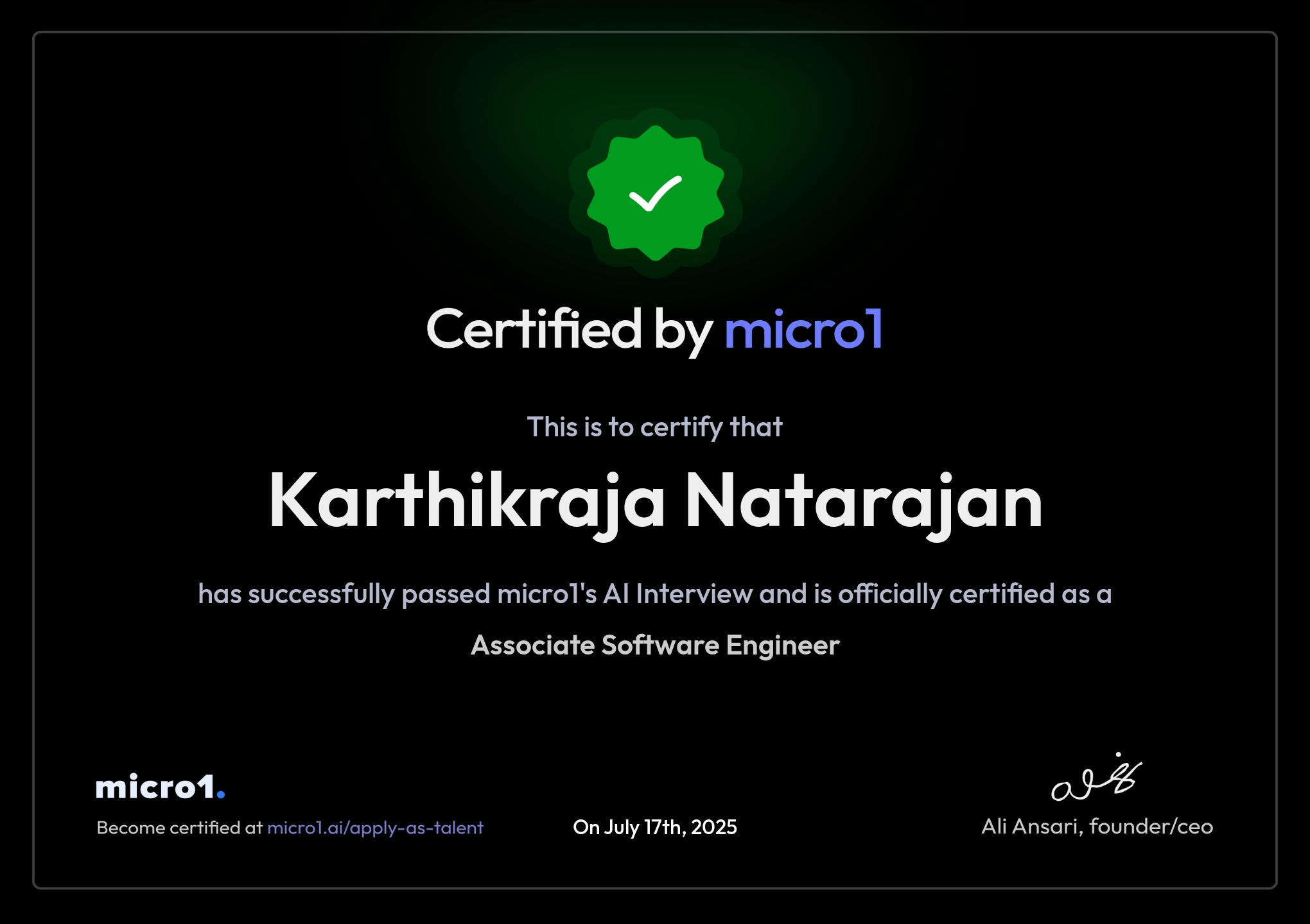 Micro1 Certified Associate Software Engineer