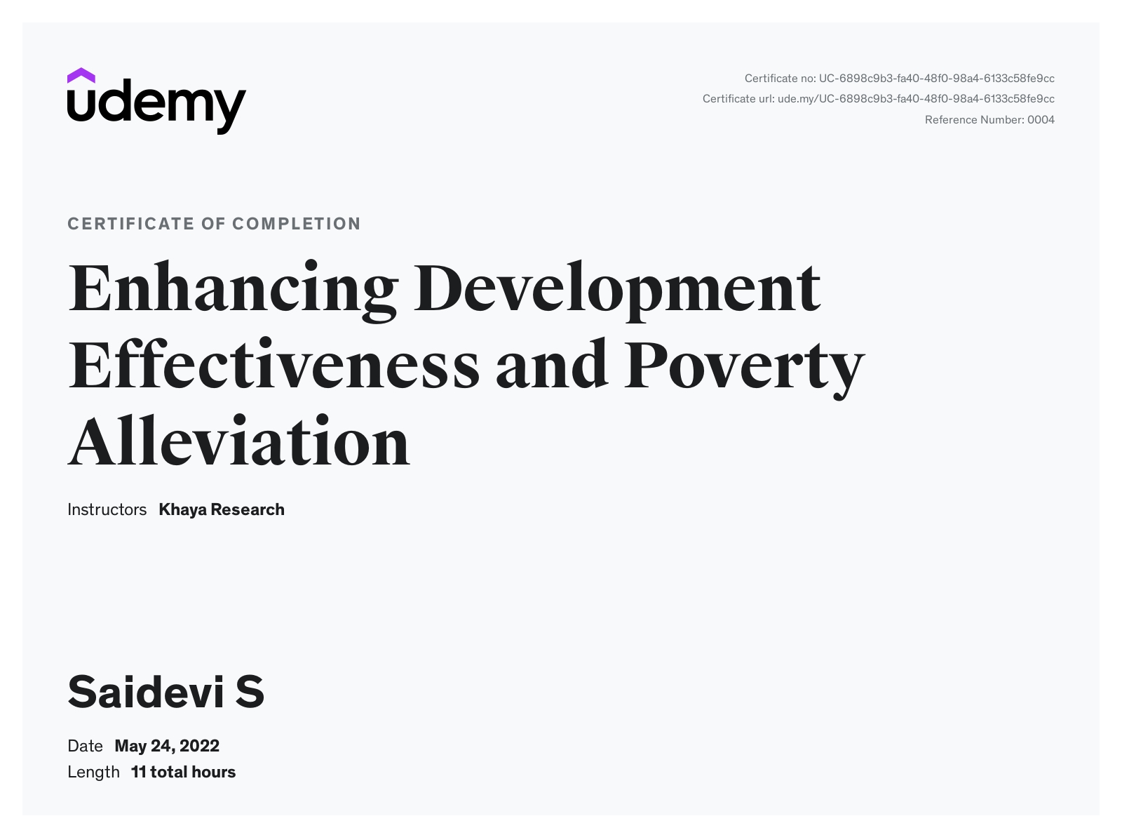 Certification in Enhancing Development Effectiveness and Poverty Alleviation