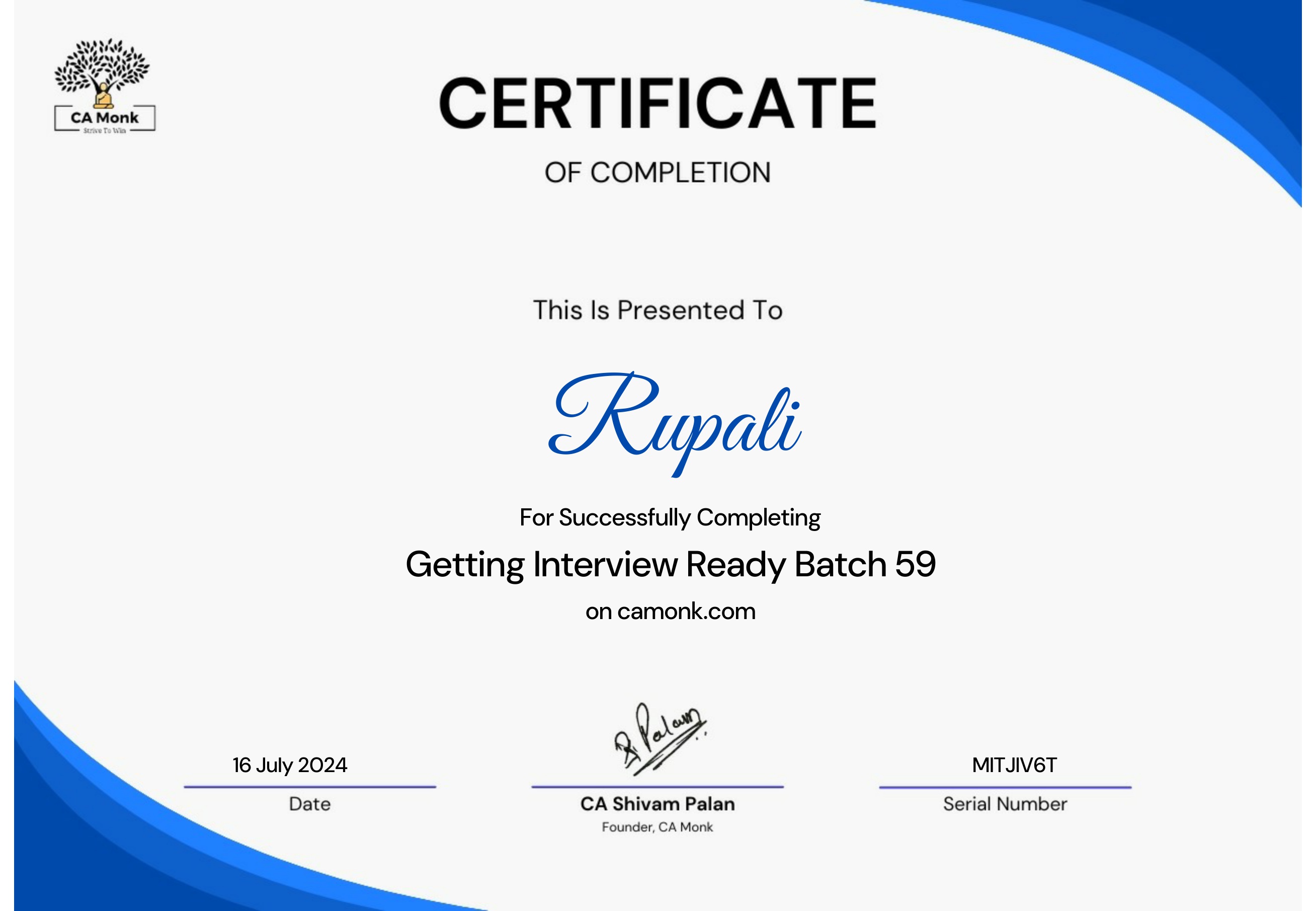 CA MonkAug 2024 - View certificate