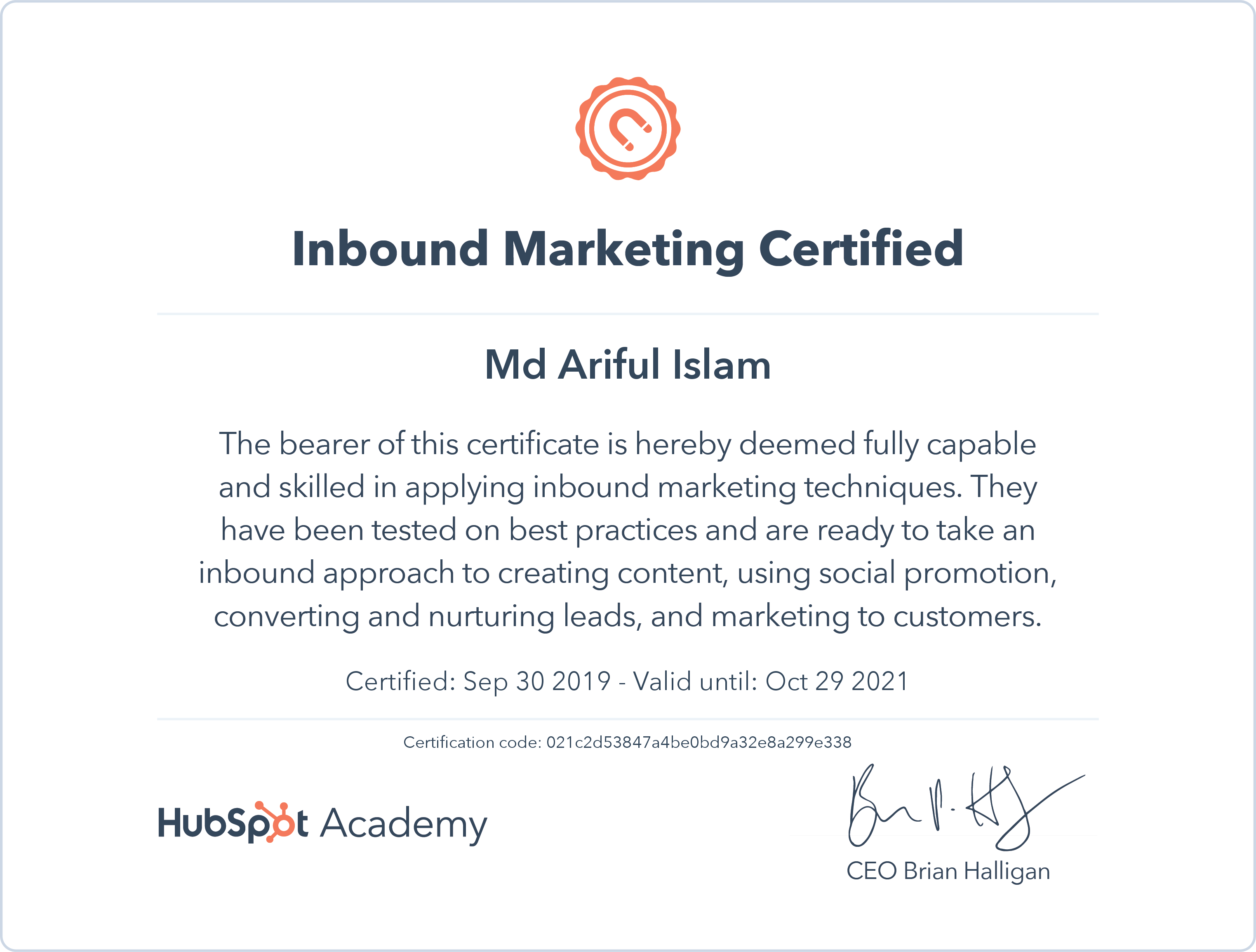 HubSpot AcademySept 2019 - View certificate