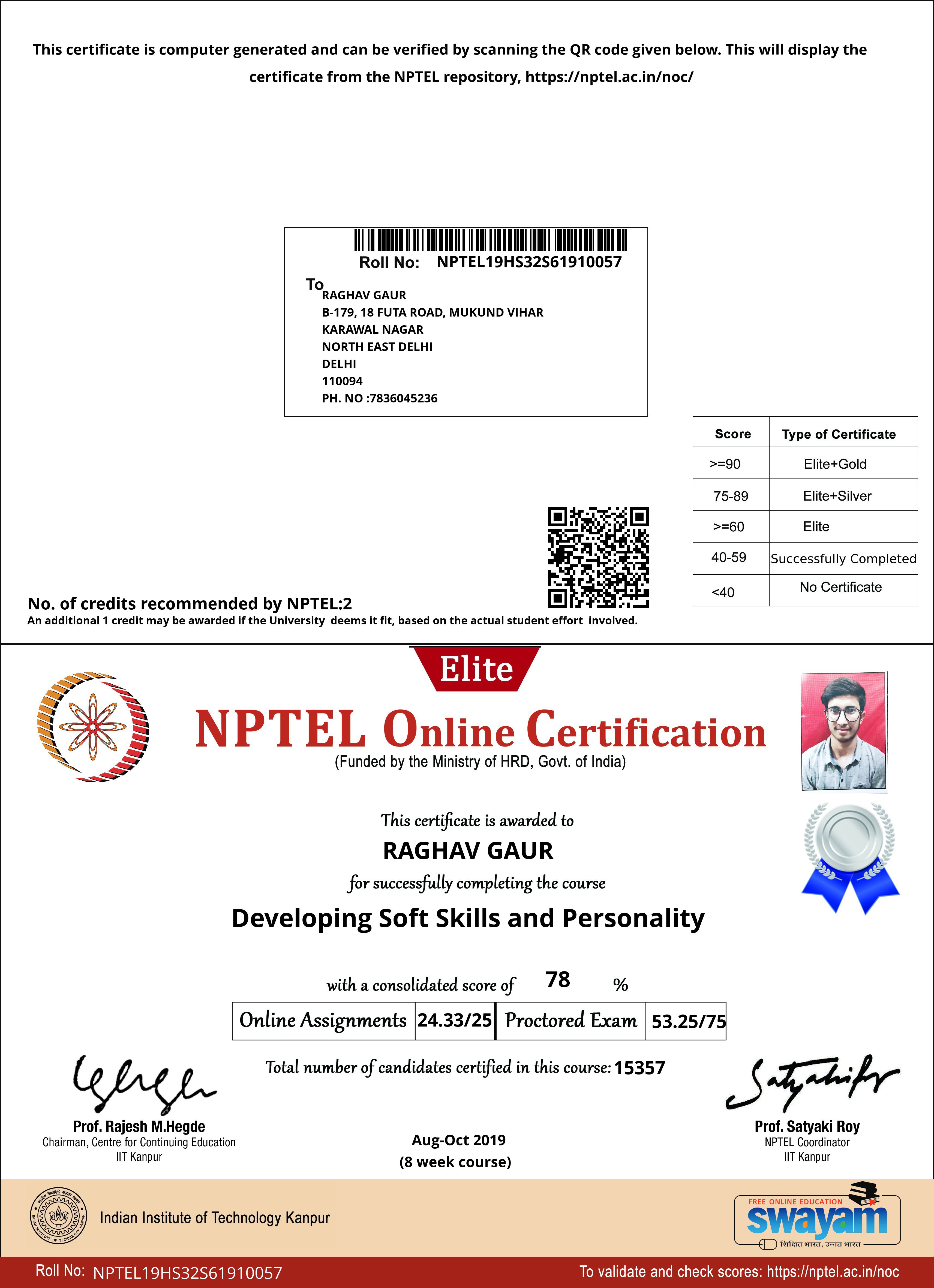 NPTEL Online CertificateAug 2019 - View certificate