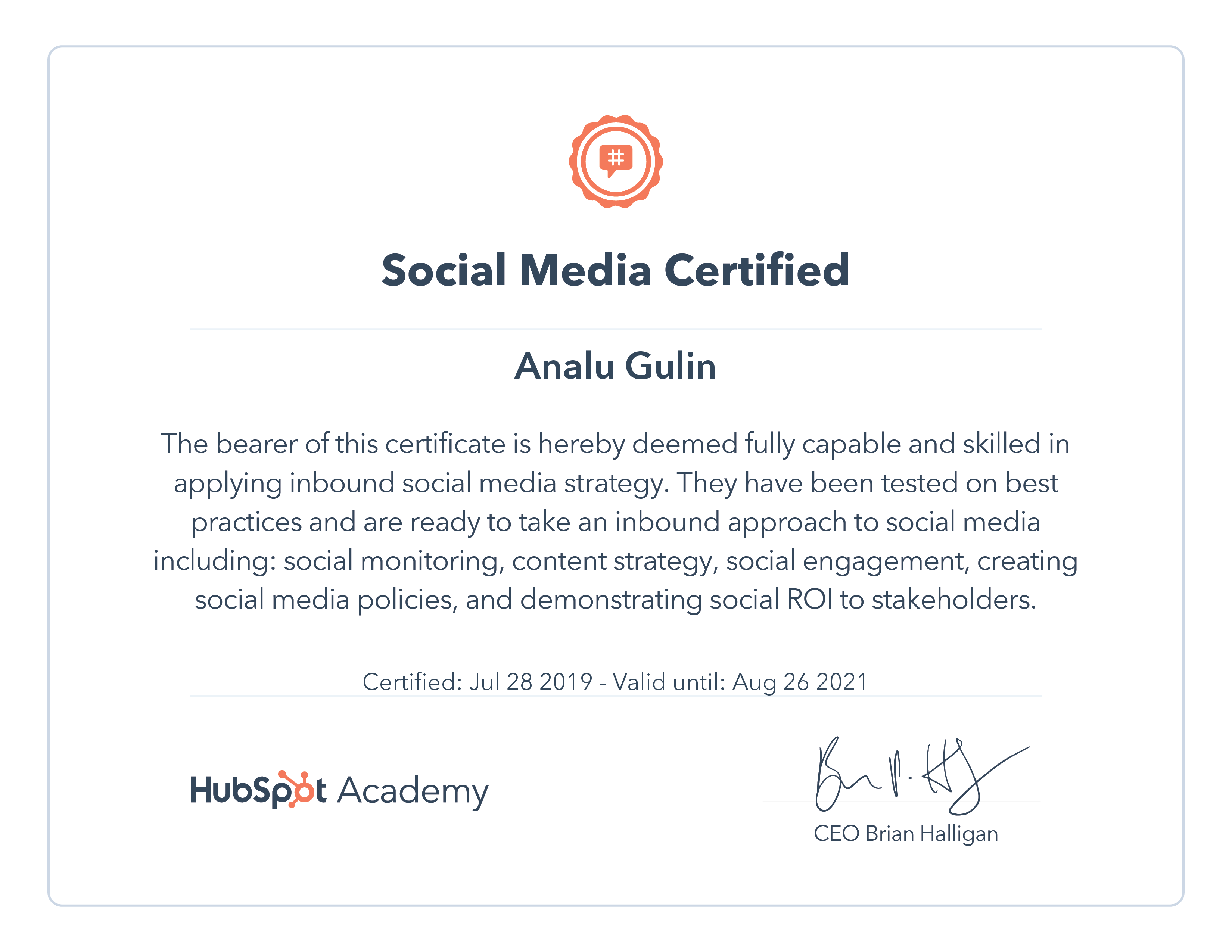 HubSpotJul 2018 - View certificate