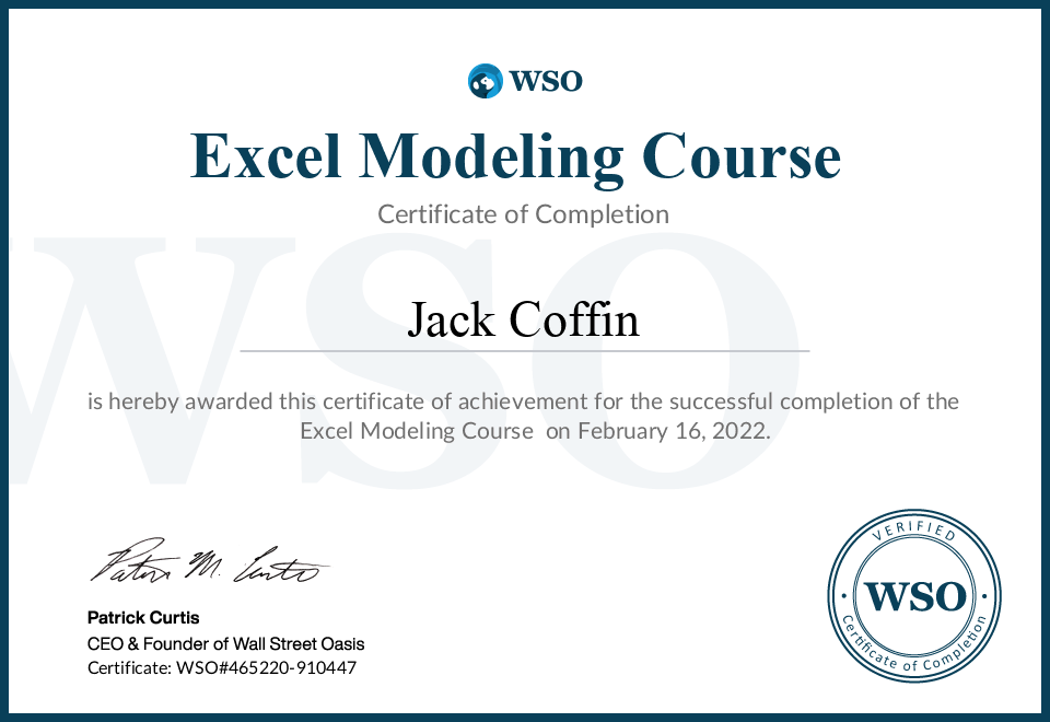 Wall Street OasisFeb 2022 - View certificate