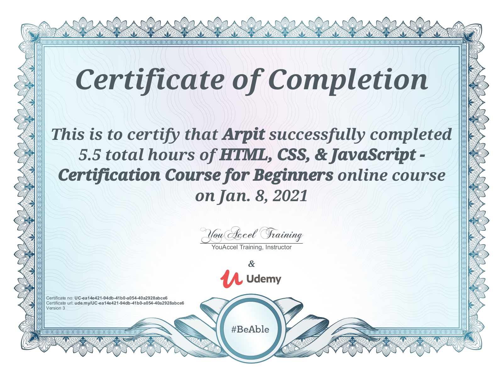 UdemyJan 2021 - View certificate