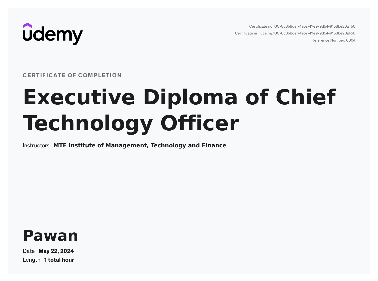 Executive diploma of chief technology office