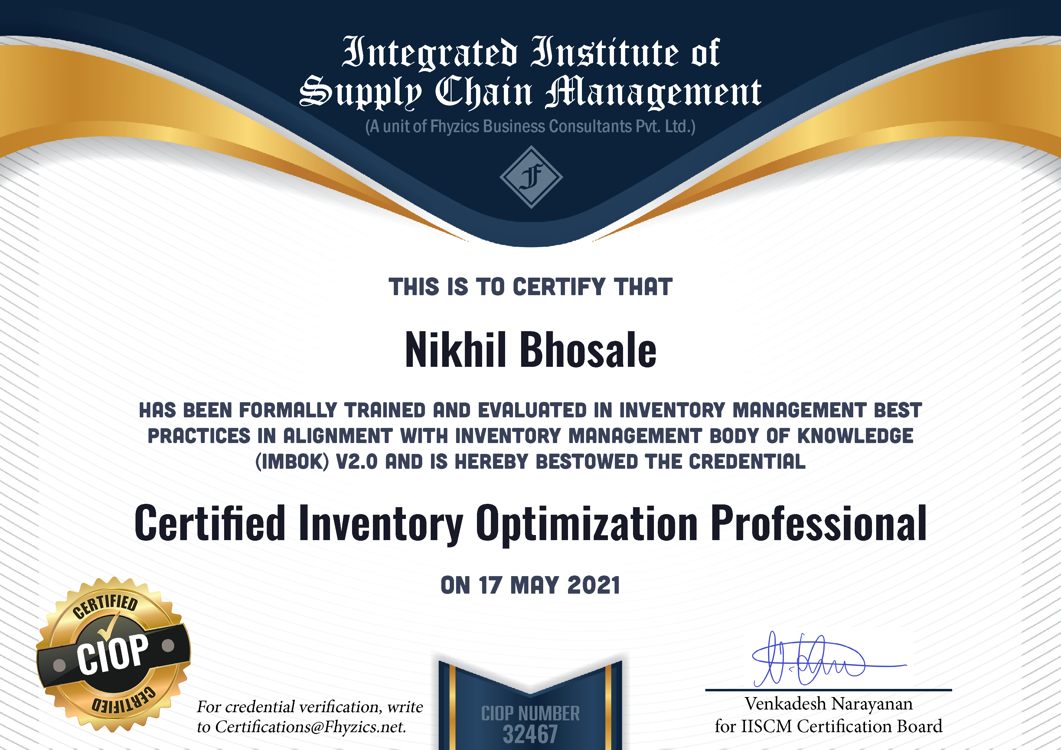 Certified Inventory Optimization Professional CIOP)