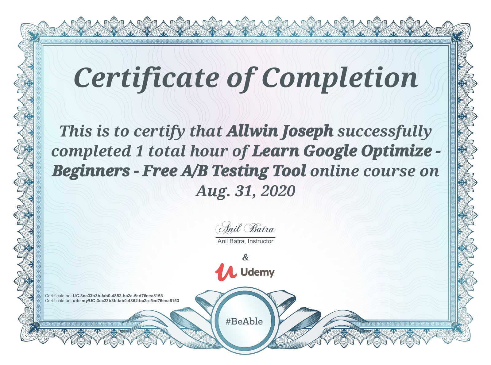 UdemyAug 2020 - View certificate