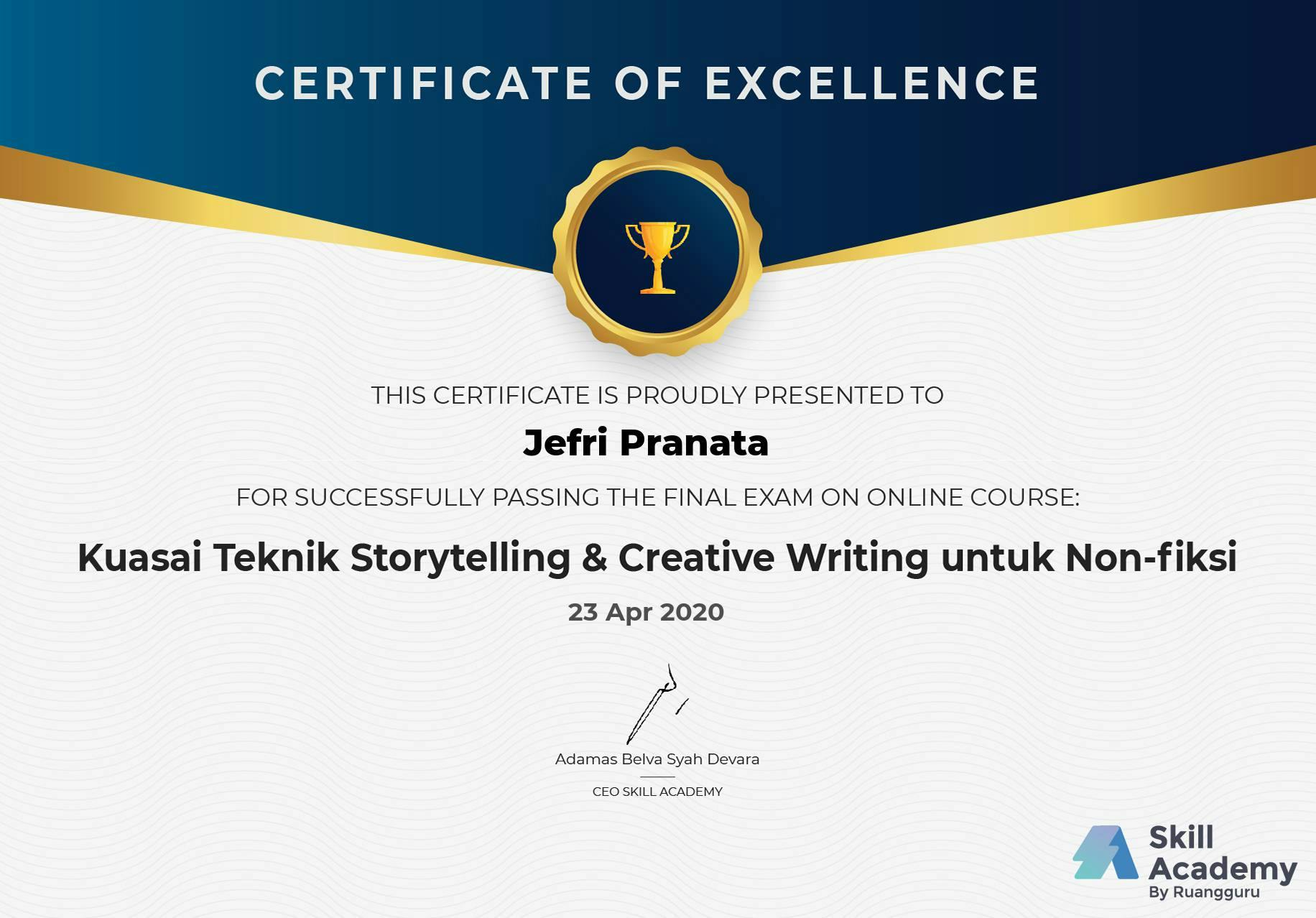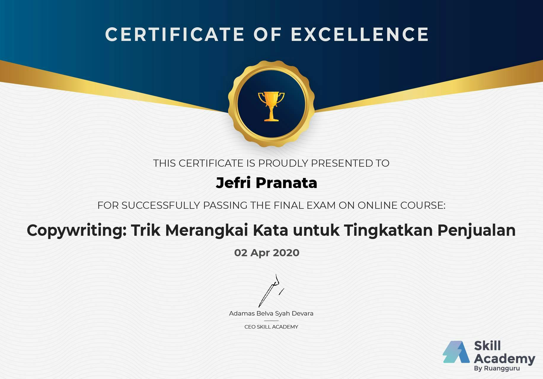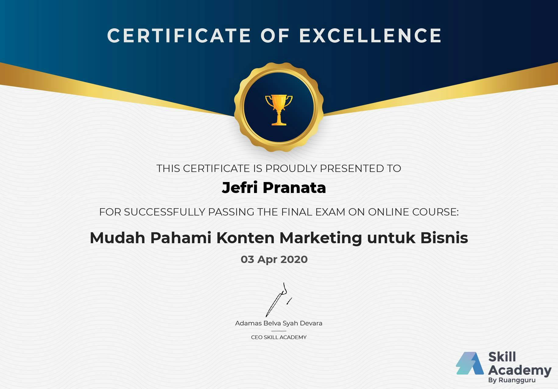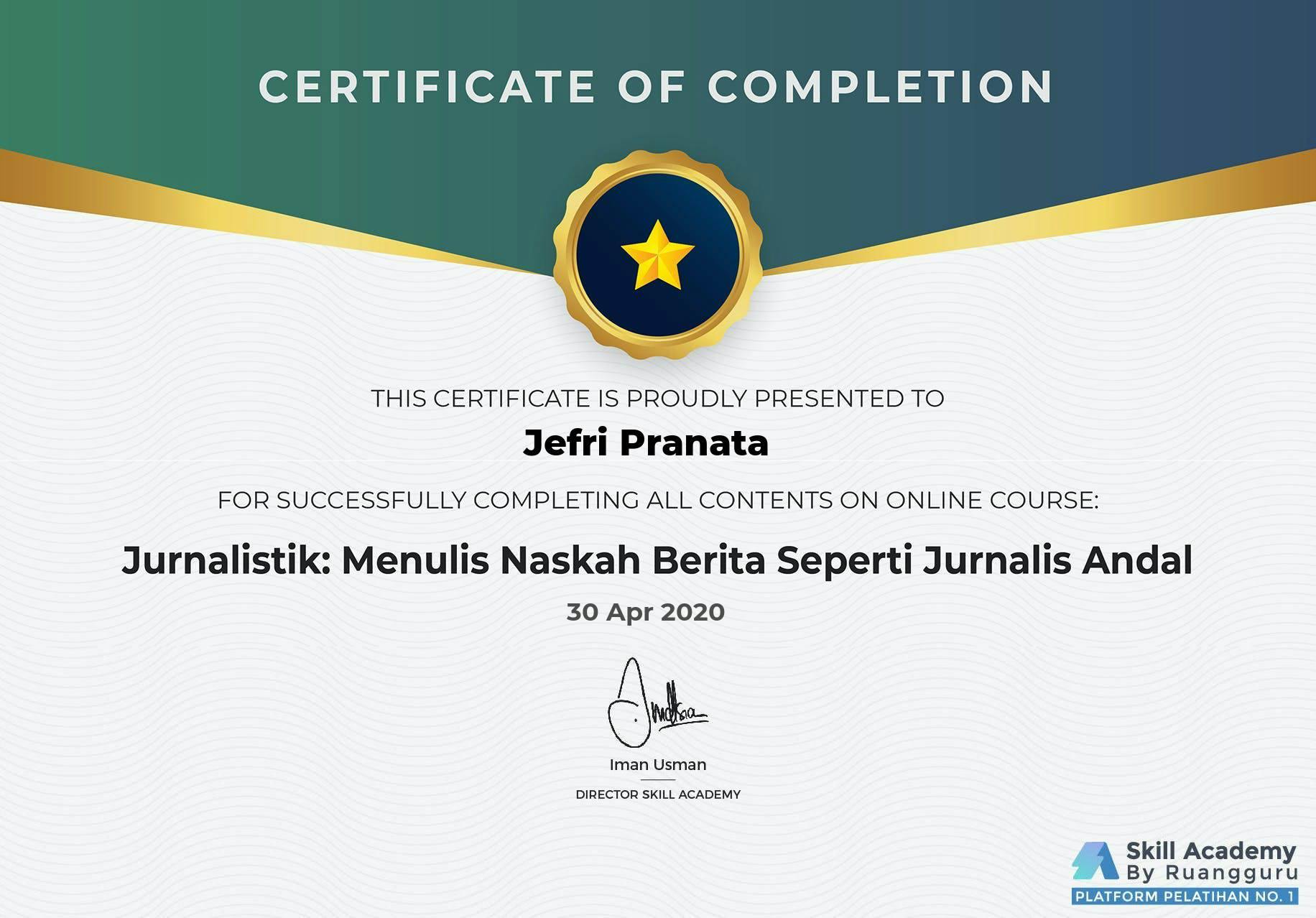 Skill Academy by RuangguruApr 2020 - View certificate