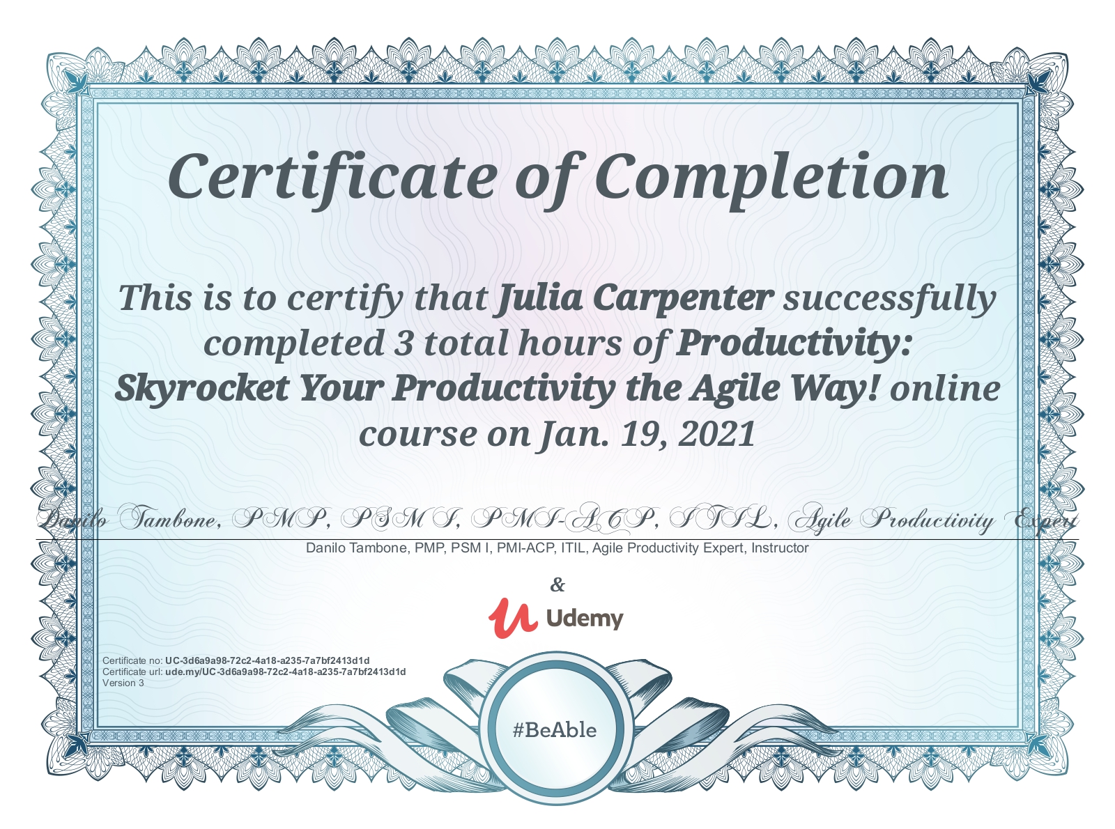 Julia Carpenter, CSM, PMP, Toastmaster, Doctoral Student