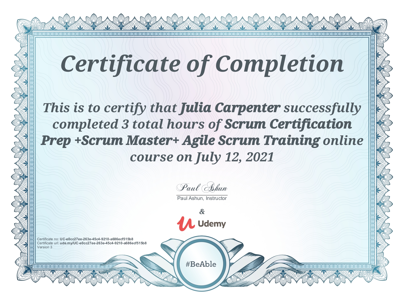 Associated with Julia Carpenter, CSM, PMP, Toastmaster, Doctoral Student