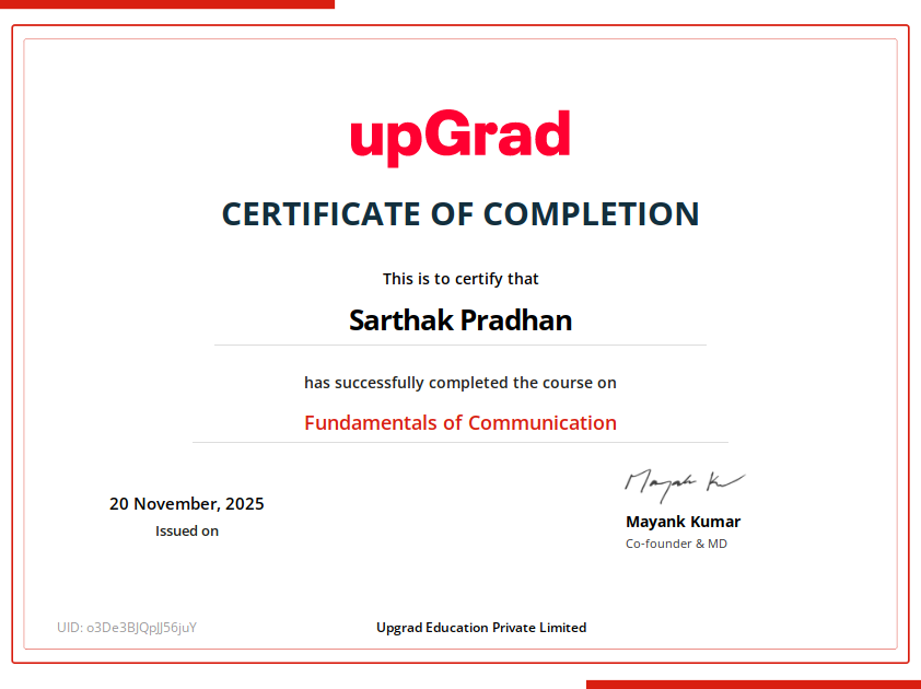 UpGradNov 2025 - View certificate